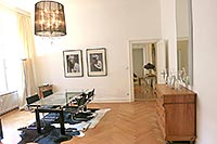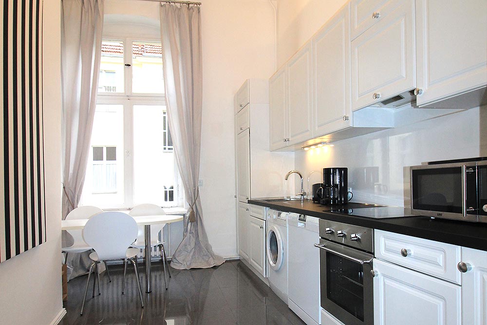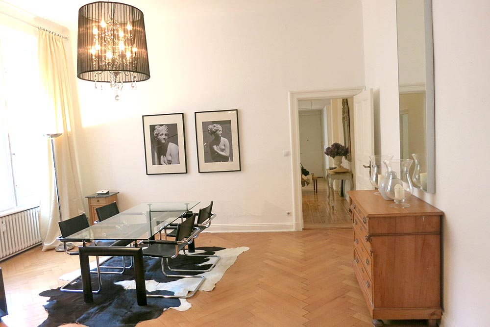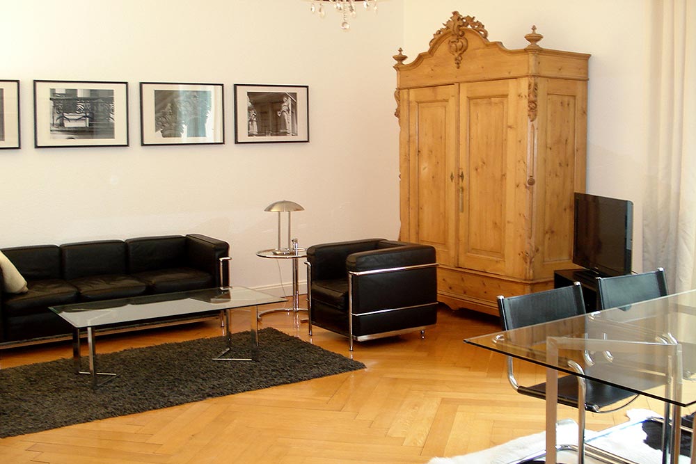 Die vollmöblierte Wohnung befindet sich im 3. OG des Seitenflügels eines charmanten Altbaus der Jahrhundertwende (1910) in einer der besten Lagen der City-West nahe Fasanenplatz.